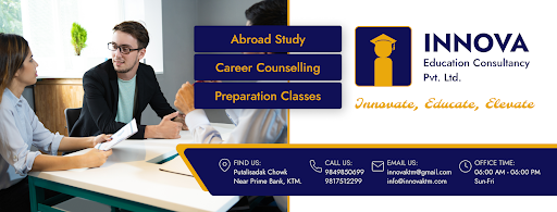 Innova Education Consultancy in Putalisadak, Bagbazar Line, Kathmandu supports Nepali students for higher education abroad, specializing in English-speaking countries like USA, UK, Australia, Canada, Denmark, Germany along with Japan and Korea. We guide students on their international academic journey.
