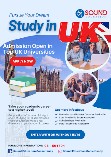 Sound Education Consultancy stands as the No.1 education consultancy in Pokhara, delivering unparalleled services in IELTS and PTE coaching, academic counseling, university screening, and visa assistance. Our dedicated team ensures a seamless journey, from meticulous documentation guidance to visa lodgement and departure sessions. With a focus on excellence and personalized attention, we guide students towards their academic goals with confidence and expertise, ensuring a bright and successful future.
