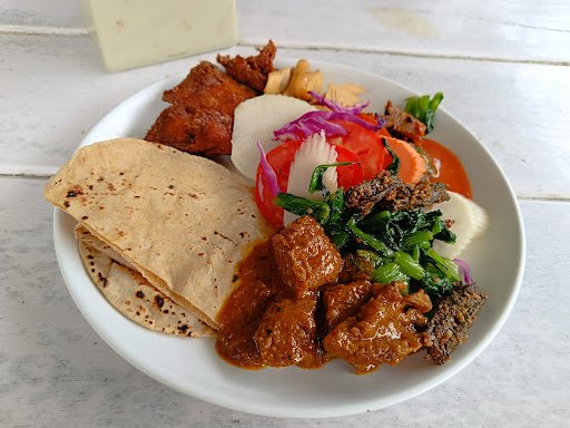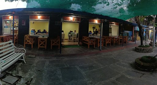 A garden restaurant with variety of foods in peaceful environment with parking area .